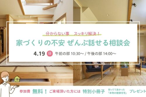 4/19(日) 分からない事、スッキリ解決!【家づくりの不安 ぜんぶ話せる相談会】